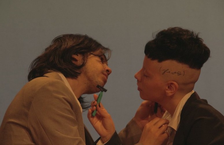 Dois eles, um cisgênero e um transgênero, casados na vida real, se colocam num palco para juntos realizarem algumas ações e jogos performativos. São criadas imagens que remetem direta ou indiretamente as questões de sexualidade, gênero, existência e essência. Nesse percurso, surgem tensões, contradições e limites que suscitam reflexões acerca do que é um homem, um ele, ou o próprio masculino.
